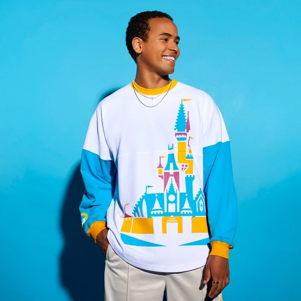 Join The World’s Most Magical Celebration in this color-blocked Spirit Jersey featuring retro Cinderella Castle icon and the classic Walt Disney World logo.