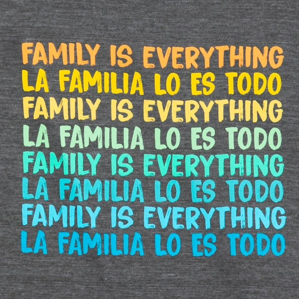 The message behind the Disney movie Encanto is written loud and clear on the front of this tee, not to mention in different colors and languages! ”Family is Everything” encapsulates the story of the extraordinary Madrigal family who live in a magical house in aΒ wondrous, charmed place in the mountains of Colombia.