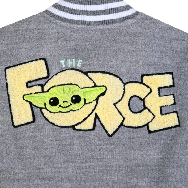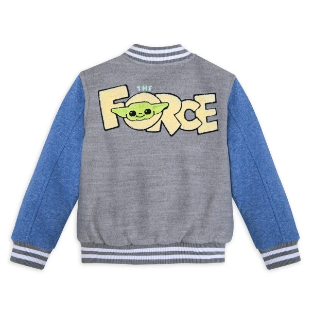 ”Baby Yoda” welcomes kids to the all-star team with this classic varsity jacket featuring chenille Grogu appliquΓ©s on front and back, plus striped rib trimsβa sporty style that will make them a Force to be reckoned with on or off the field.