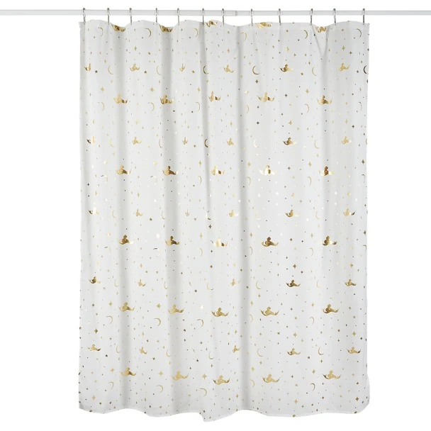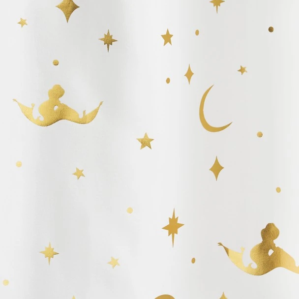 Take your bath time to a whole new world with this Jasmine shower curtain. This shimmering designย features an allover gold foil print of Jasmine’s and Aladdin’s silhouettes flying through the night sky, addingย a touch of magic to your bathroom.