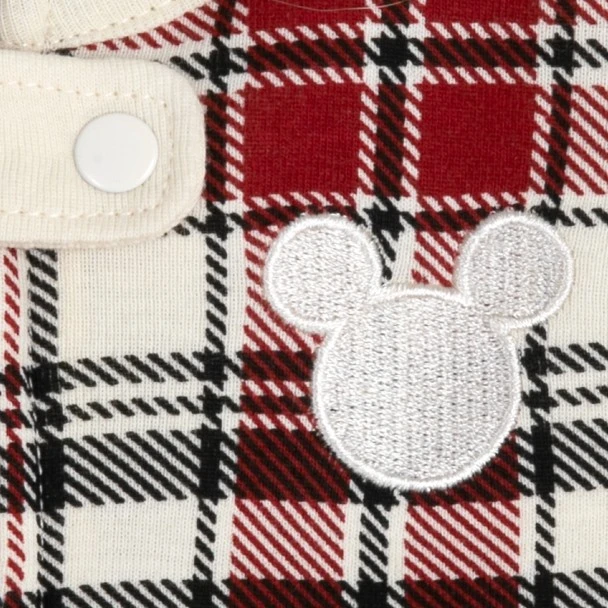 Your little Mouseketeer will sleep peacefully on Christmas Eve with this festive one-piece. Featuring an allover plaid pattern, an embroidered Mickey Mouse icon, full zip front, this sleeper will keep your baby warm and snuggly.