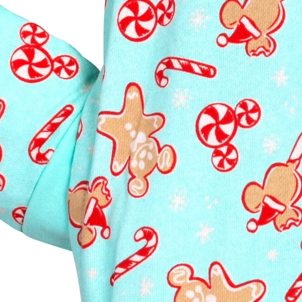 You’ll enjoy sweet dreams in this festive coverall featuring an allover print of Mickey holiday treats. The one-piece loungewear includes a hood with 3D ears and is covered in Gingerbread Mickeys, ice cream bars, and peppermint twist icons!