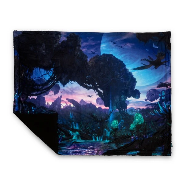 Cuddle up with this fuzzy throw blanket that will transport you to the beautiful world of Pandora. The design features scenic screen art of Pandora, inspired by the world of Avatar.