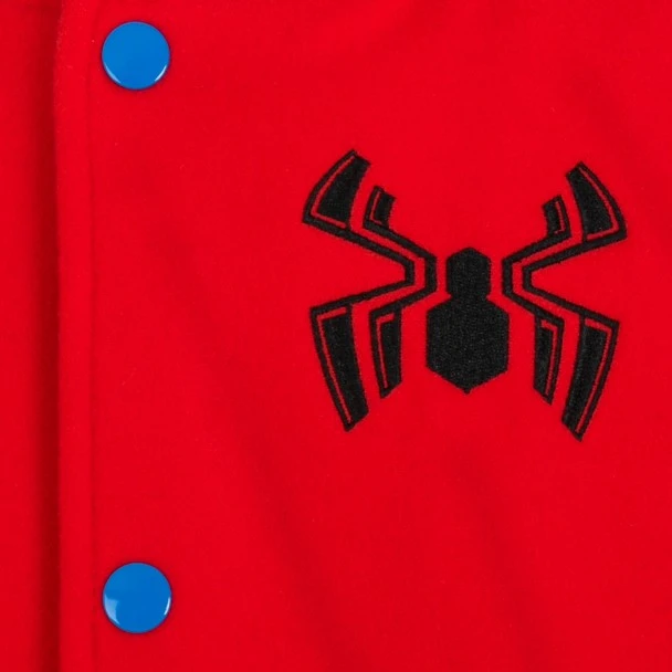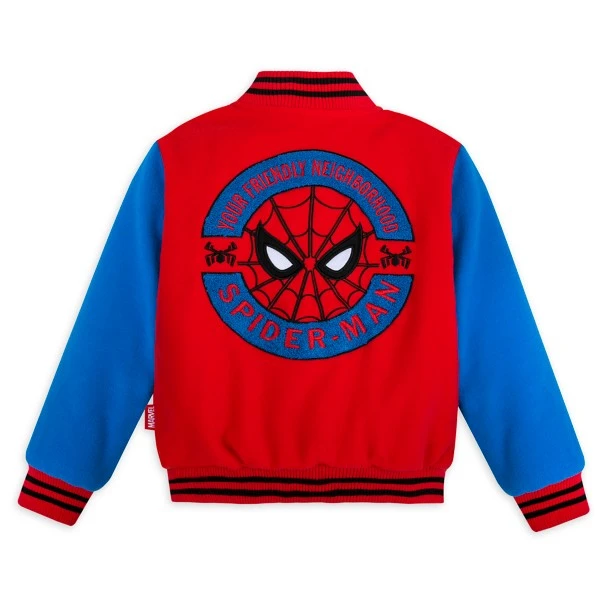 Spider-Man welcomes kids to a winning team with this classic varsity jacket featuring embroidered chenille appliqués on front and back, plus striped rib trims–a sporty style that will look heroic on or off the field.