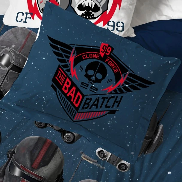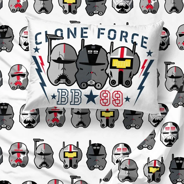 - Pillowcase features helmet artwork with ”Clone Force / BB 99” text