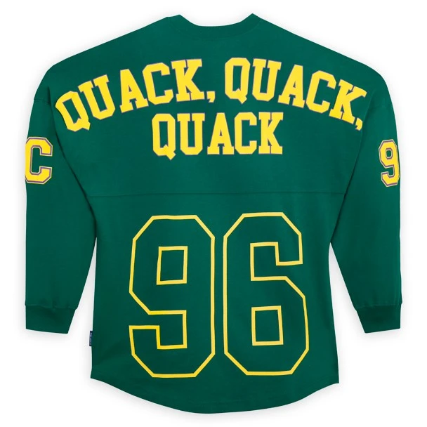 Birds of a feather will flock together while wearing this sporty pullover Spirit Jersey with v-neck lacing and metallic ”The Mighty Ducks 30” logo, plus team mascot screen art and allover ”96” athletic styling.