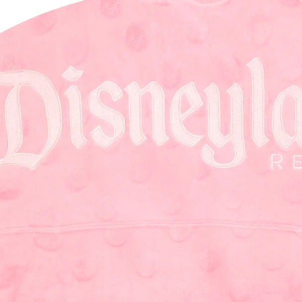 Go dotty at the Disney Parks in this premium pullover pink Spirit Jersey with pieced yoke, embroidered Disneyland ”D” icon and logo, and allover raised fuzzy dot pattern in our cozy velour fabric.