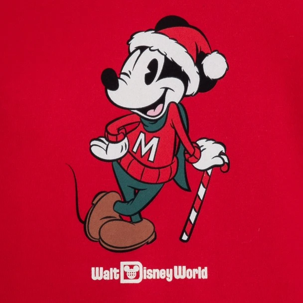 Enjoy the cuddliest time of the year with this cotton Mickey Mouse Christmas sweatshirt with its fleece fabrication interior. Vintage-style art features a very merry Mickey leaning on a candy cane so you know the holiday fun has begun. The Walt Disney World logo adds an extra special touch.
