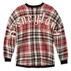 Mickey makes merry on this plaid knit sweater with the famous Spirit Jersey cut. On the back shoulders, our Disneyland logo provides a jolly reminder of your holiday visit.