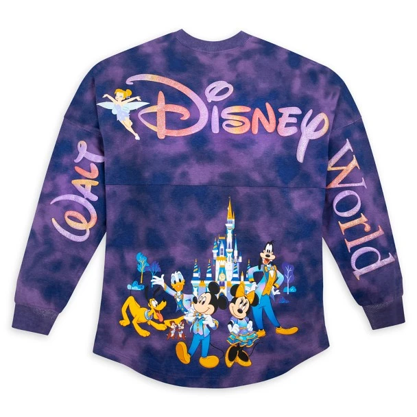 Join The World’s Most Magical Celebration in this tie-dyed Spirit Jersey with Disney character art on both sides, plus puffy Walt Disney World logos.
