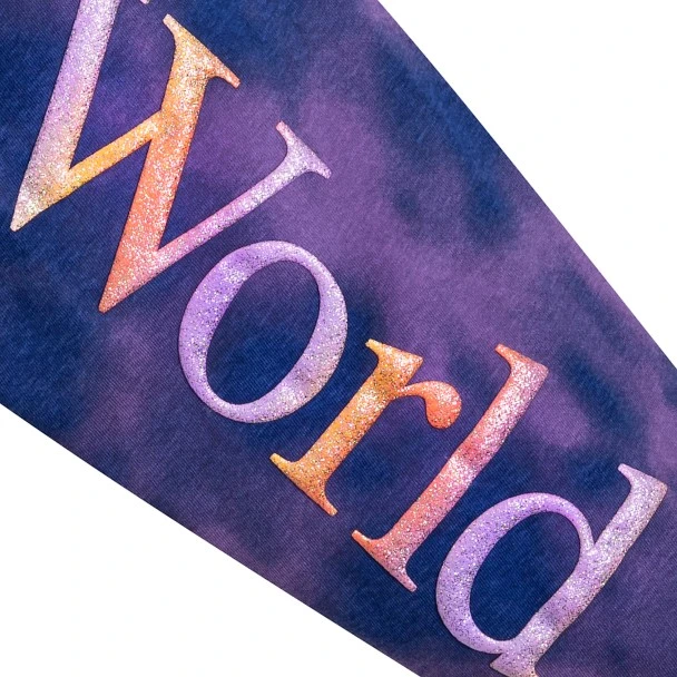 - Puffy ink Walt Disney World logo across back shoulder and sleeves