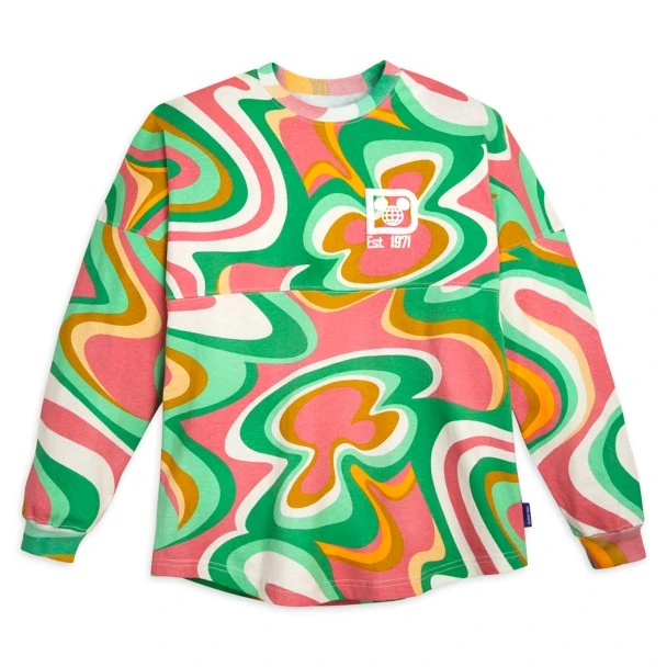 Make an entrance in this show-stopping Walt Disney World Spirit Jersey featuring an eye-catching allover swirl pattern. Lightly puffed screen print of the iconic logo on the front and Walt Disney WorldΒ on the back make it a scene stealer. Can you find the Mickey Mouse icons ”hidden” in the gorgeously colored swirls?